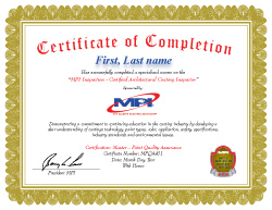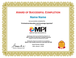PEKA Assessment Accreditation: MPI Certified Architectural Coating Inspector MPI Inspection ID number Re-certification |